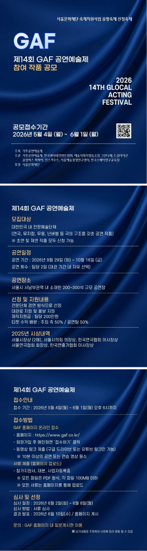 2026년 경북예술로리더예술인 모집 공고「경북예술로」는 예술인과 기업·기관 간 확장된 파트너십을 통해 예술인 직업 안정을 도모하고,예술적·사회적 가치를 확산하고자 하는 사업입니다.본 사업은 예술적 접근을 통해 조직이 지닌 다양한 이슈에 새로운 관점과 아이디어를 더하고자 하는기업·기관과 예술인을 매칭하여,예술인의 전문성과 창의성을 바탕으로 협업 프로젝트를 추진합니다.이에 경북문화재단은 2026년「경북예술로」사업에 참여할 리더예술인을 모집하오니많은 관심과 참여를 바랍니다.※ 첨부파일 참조
